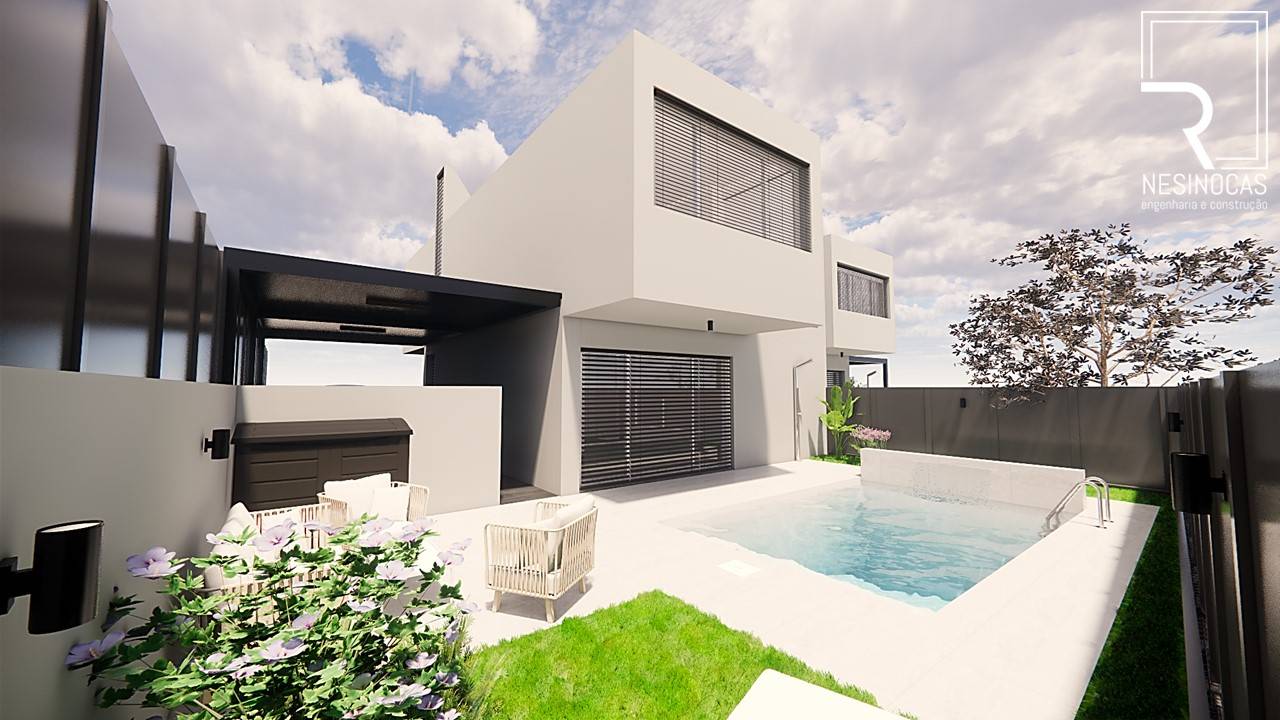 O empreendimento onde está inserida é composto por duas moradias do tipo T4, divididas em apenas 2 pisos, com jardim, piscina e estacionamento para 2 veículos.
